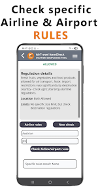 De functionaliteit van de app is gericht op gebruiksvriendelijkheid. Gebruikers kunnen een luchtvaartmaatschappij of luchthaven invoeren om specifieke regels te raadplegen, waardoor ze op de hoogte zijn van variaties in regelgeving. Of het nu gaat om het meenemen van een powerbank of parfum in de handbagage, AirTravel ItemCheck biedt directe evaluaties en zorgt ervoor dat reizigers goed voorbereid zijn en onnodige vertragingen voorkomen.